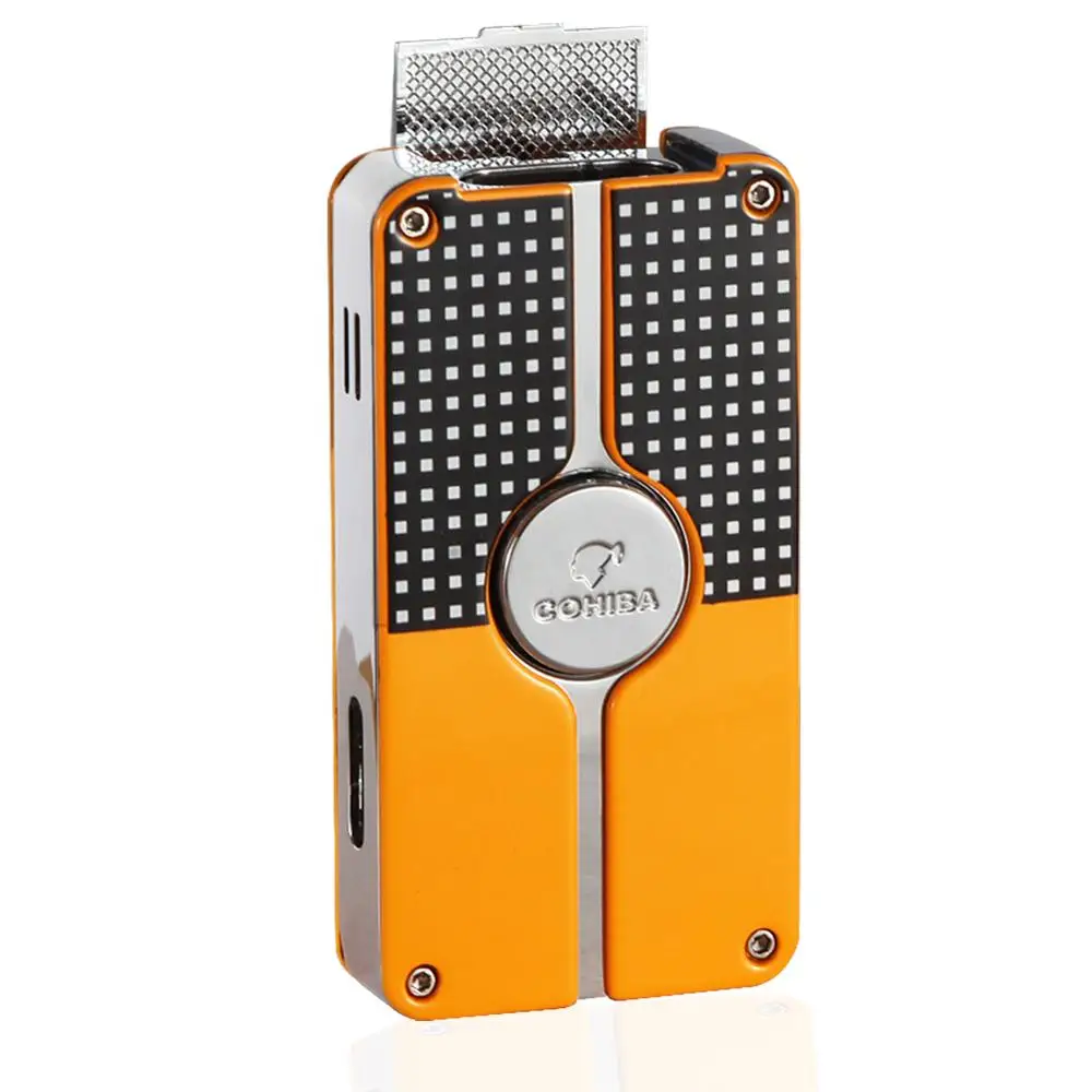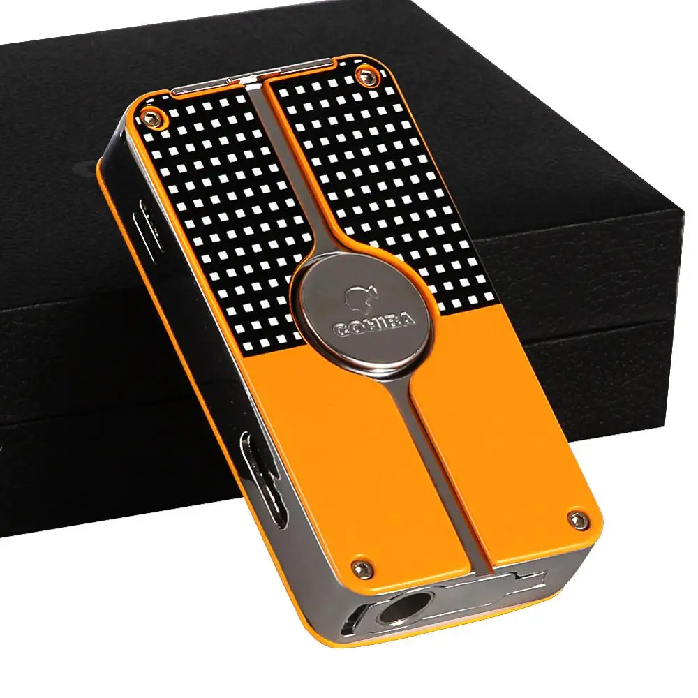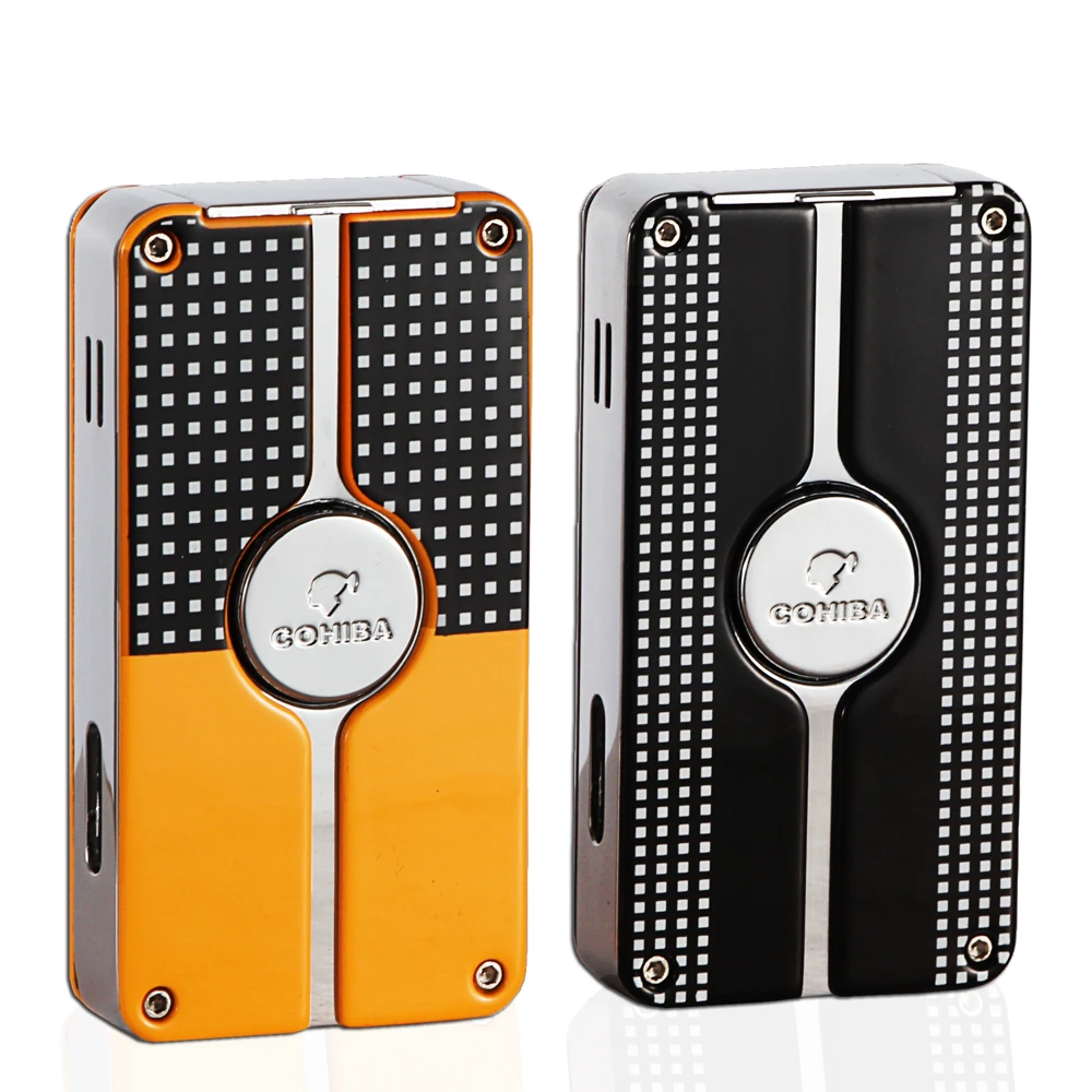 Product Name: COHIBA металлическая зажигалка для сигар, ветрозащитная, 3 синих струйных пламени, сигаретный фонарь, зажигалки, Бутановая Зажигалка, многораз...