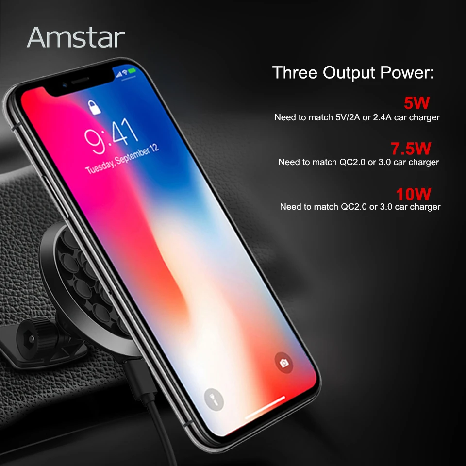 Product Name: Автомобильное беспроводное зарядное устройство Amstar на присоске для iPhone XS Max XR X 8 Plus 10 Вт Быстрое беспроводное автомобильное зарядное устрой...