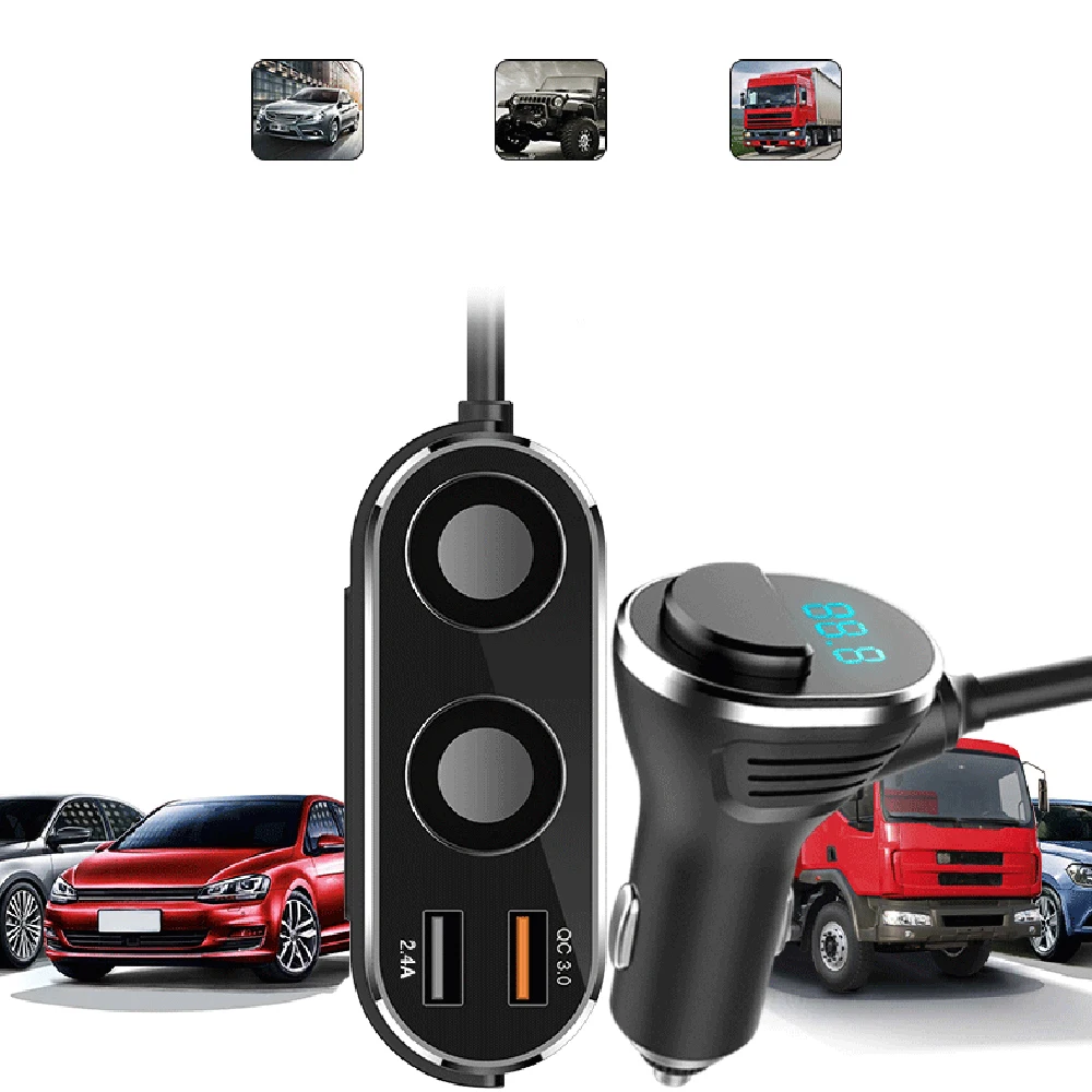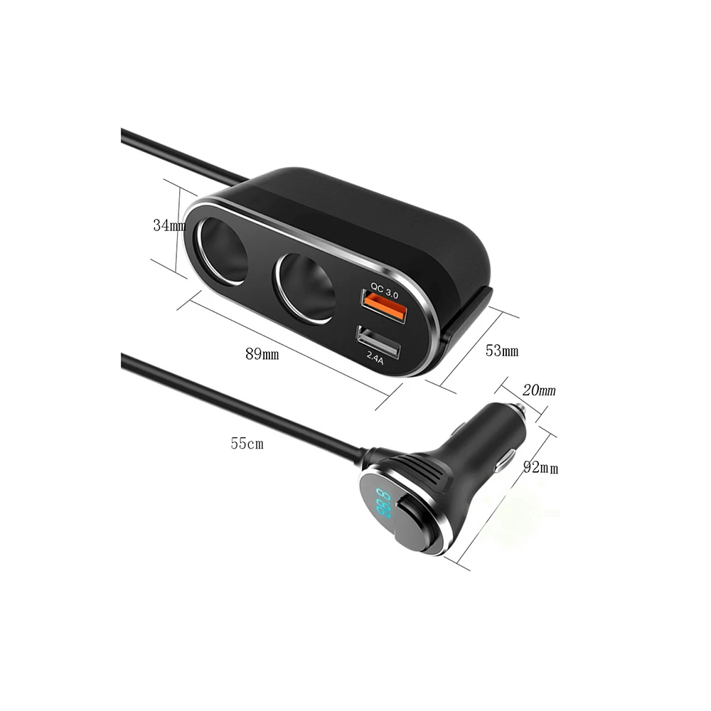 Product Name: DC 12 24 В 3,0 A Быстрая зарядка QC двойной USB порт автомобильное зарядное устройство 2 способ розетка для автомобильного прикуривателя Разветвите...